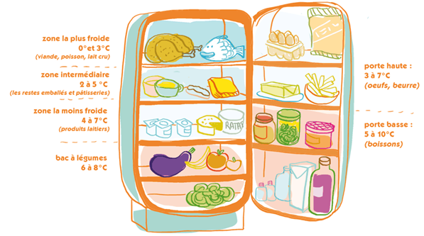 - Mieux gérer son réfrigérateur en plaçant les aliments à leur juste place en respectant les zones plus ou moins froides de celui-ci